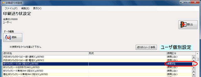 - 使用したい送り状名の使用区分を「使用する」に設定後、「更新」ボタンをクリック