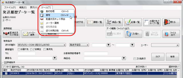 「発送履歴データ一覧」のデータを元にして、発送予定データのコピーを作成することができます。