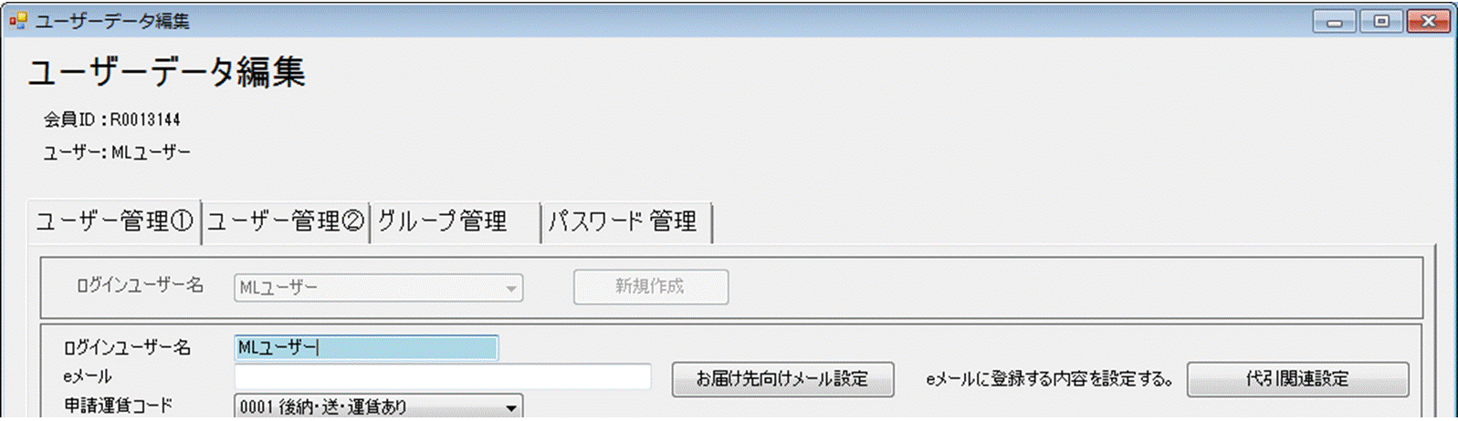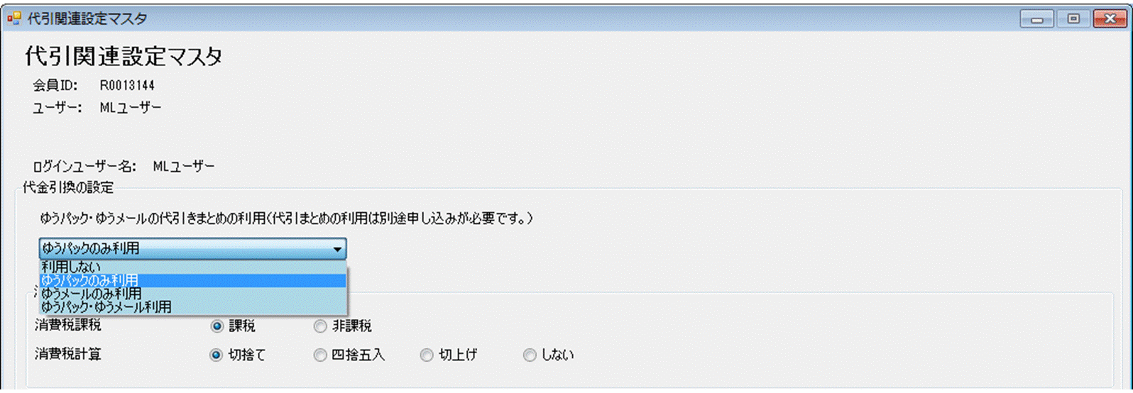 - ログインユーザーを選択後、「代引関連設定」をクリック